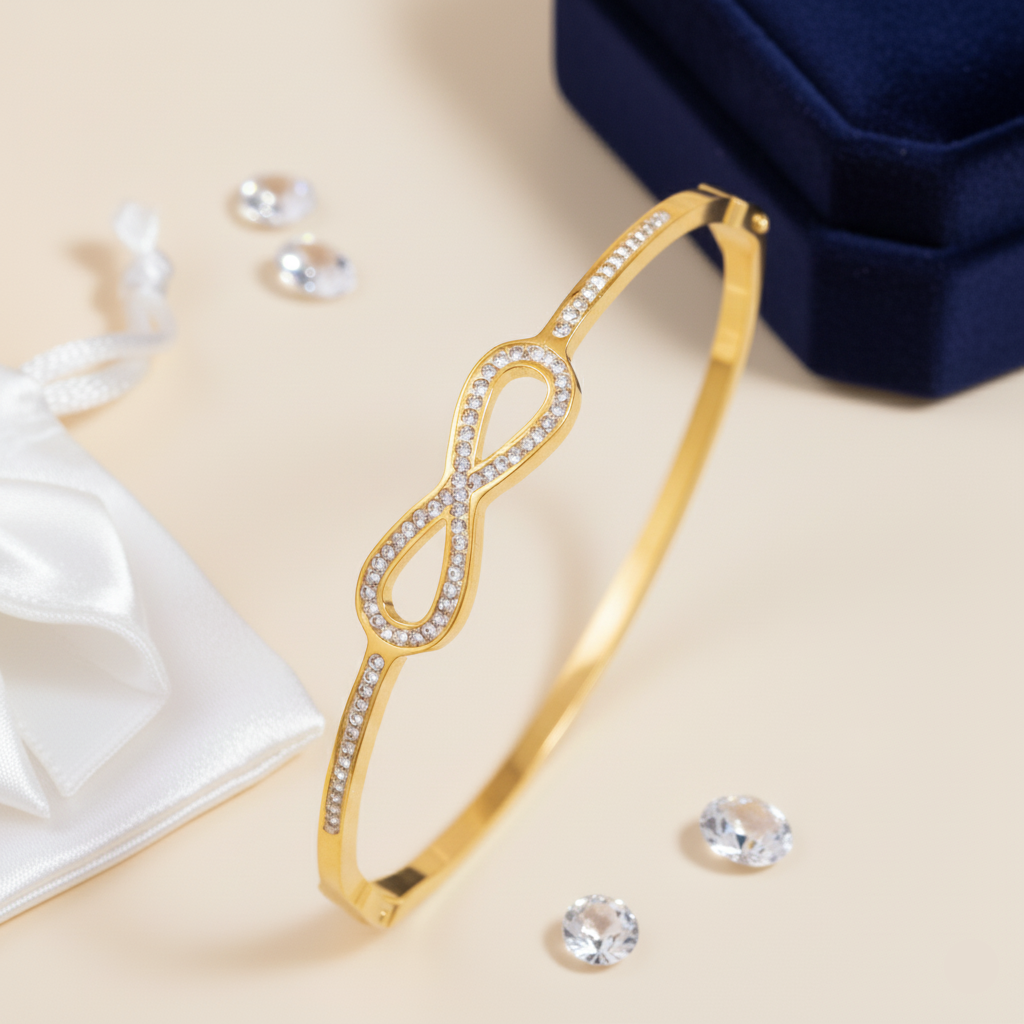 The elegant infinity charm sits perfectly on your wrist—lightweight, minimal, and meaningful. Wear it solo or stack it for that layered glam look. The ideal gift for anniversaries, best friends, or a little self-love.