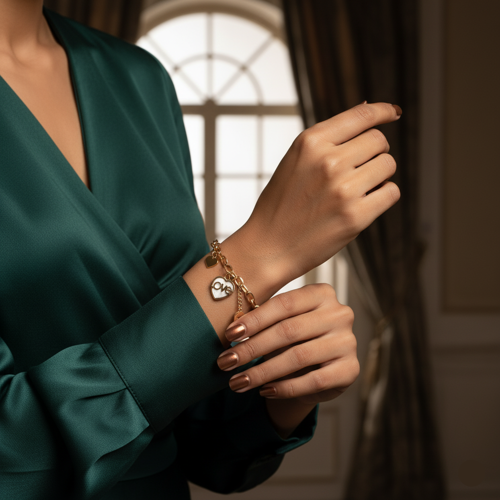 Wear your heart on your wrist — literally. The LOVE Heart Charm Bracelet – Rose Gold Plated is a sweet yet sophisticated everyday accessory designed for the romantics at heart. With dainty charm letters spelling “LOVE” and a luxe 18K rose gold PVD coating, this bracelet is made to sparkle through everything — from metro rides to coffee dates in Chennai or Cochin.