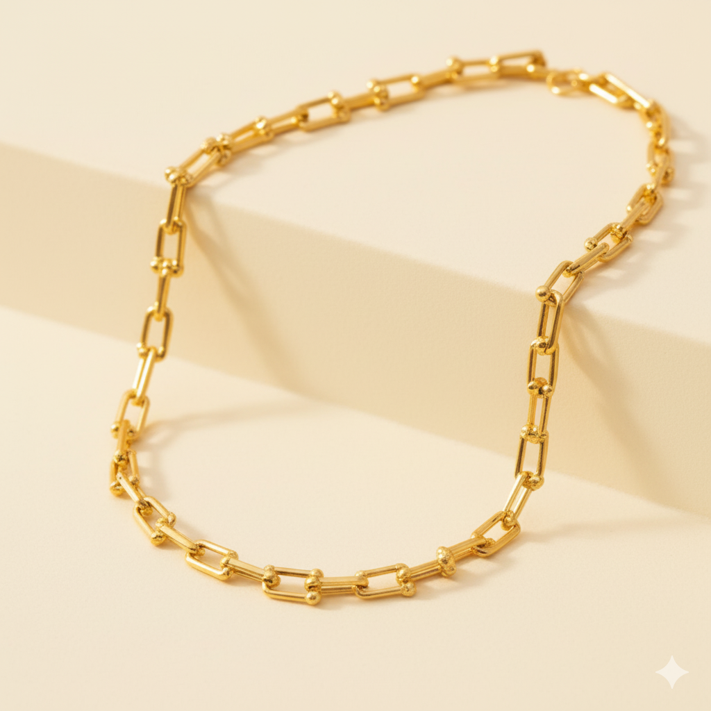 Simple. Strong. Stylish. The Paper Link Necklace – Gold Plated is the ultimate everyday chain for Indian women who love clean lines and bold elegance.